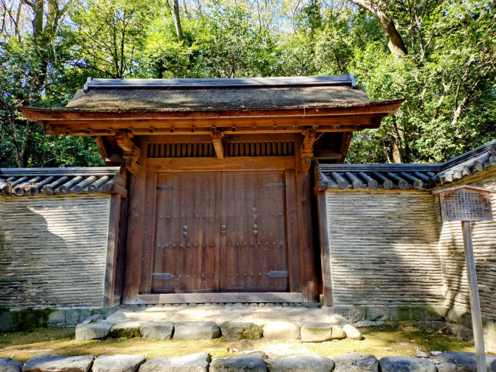 天智天皇7(668)年、新羅の僧が神剣を盗み出しこの門を通ったといわれ、以来不吉の門として忌まれたとも、神剣還座の際門を閉ざして再び皇居へ遷ることのないようにしたとも伝えられているそうです。